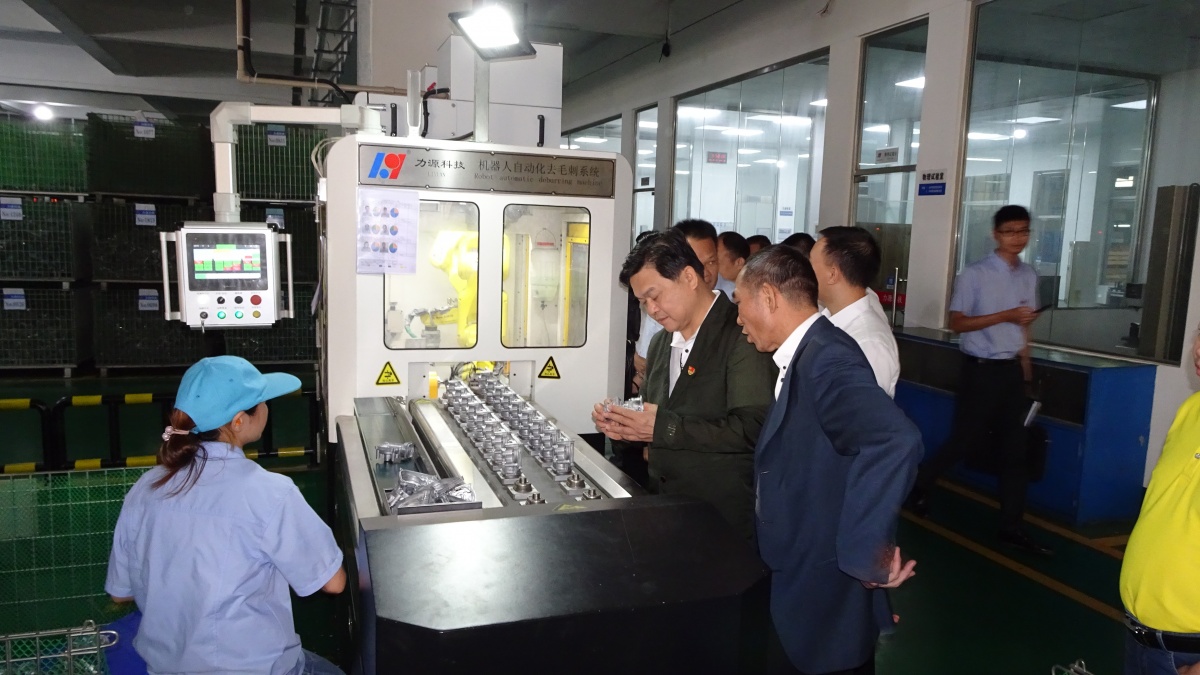梁耀鈞領(lǐng)導(dǎo)一行在我司總經(jīng)理黃均泉、支部書(shū)記陳煥祿等領(lǐng)導(dǎo)的共同陪同下,先后到我司壓鑄車間和CNC車間生產(chǎn)現(xiàn)場(chǎng)的自動(dòng)化設(shè)備進(jìn)行參觀了解,詳細(xì)了解廣東力源科技股份有限公司發(fā)展情況、產(chǎn)品生產(chǎn)流程和操作過(guò)程;總經(jīng)理黃均泉特別介紹了新引進(jìn)及自主研發(fā)的自動(dòng)化設(shè)備操作系統(tǒng),響應(yīng)新時(shí)代時(shí)期追求科學(xué)創(chuàng)新的發(fā)展需求,得到現(xiàn)場(chǎng)參觀的梁耀鈞等領(lǐng)導(dǎo)同志的充分認(rèn)可。