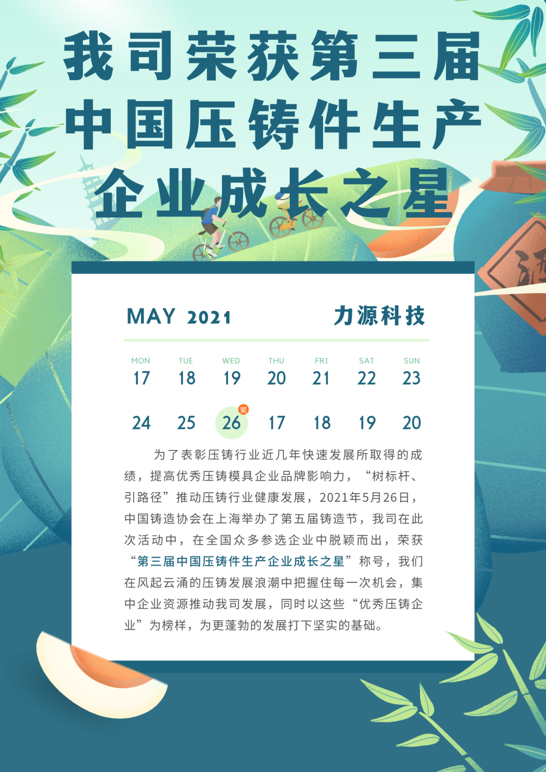 我司榮獲第三屆中國壓鑄件生產企業成長之星